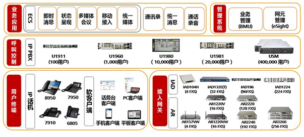 系統結構上將IPT基礎語音和UC業務應用功能模塊化,部署靈活,管理簡單。用戶容量或UC應用的增加,均可以最小化投入實現平滑擴容。