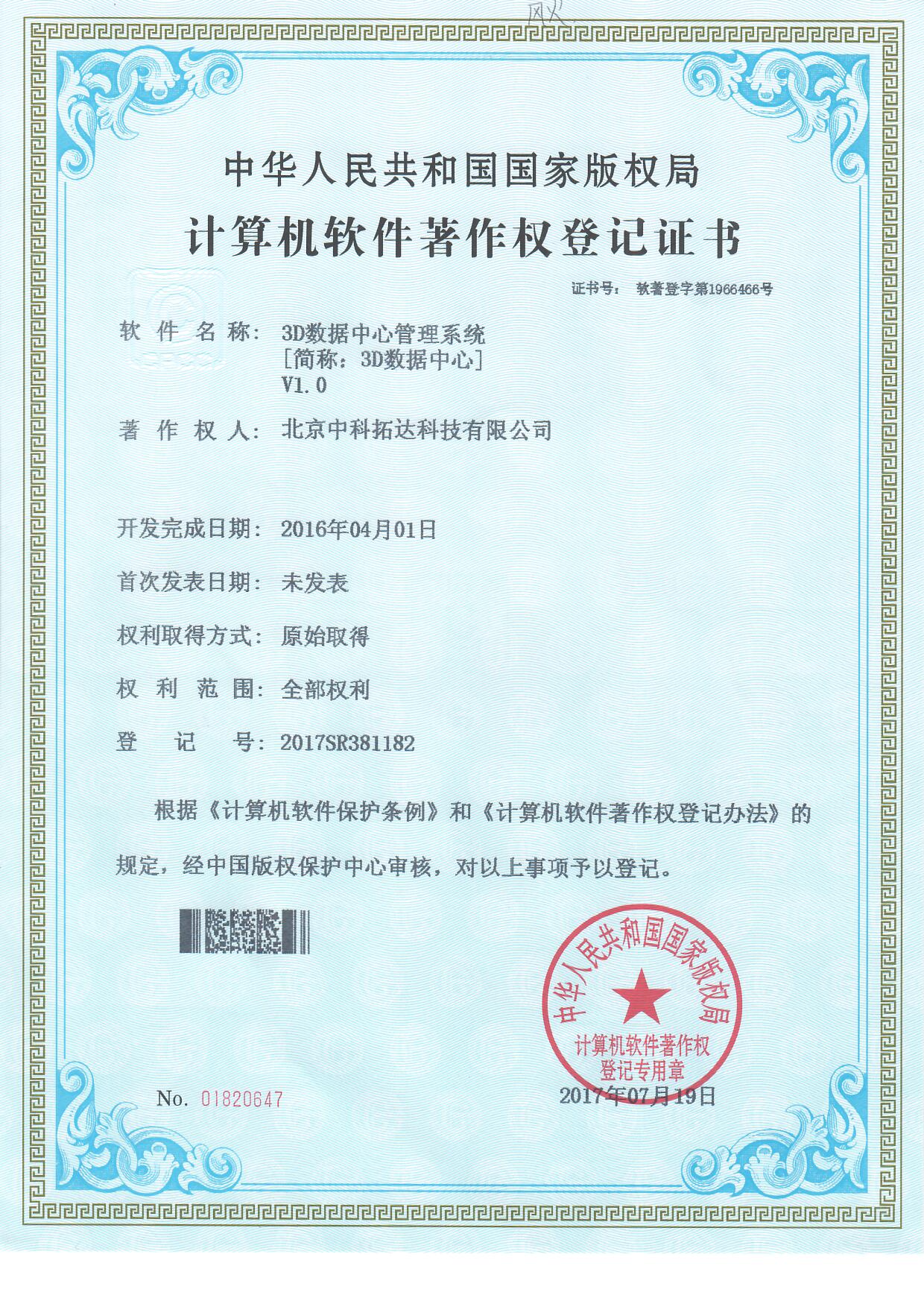 3D數據中心管理系統軟件證書